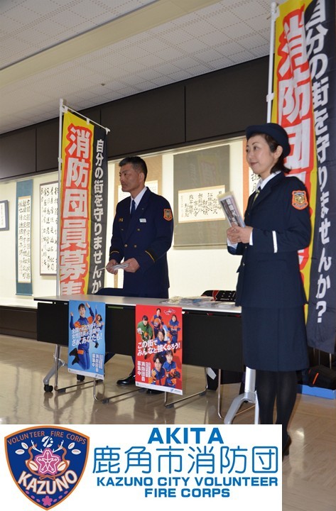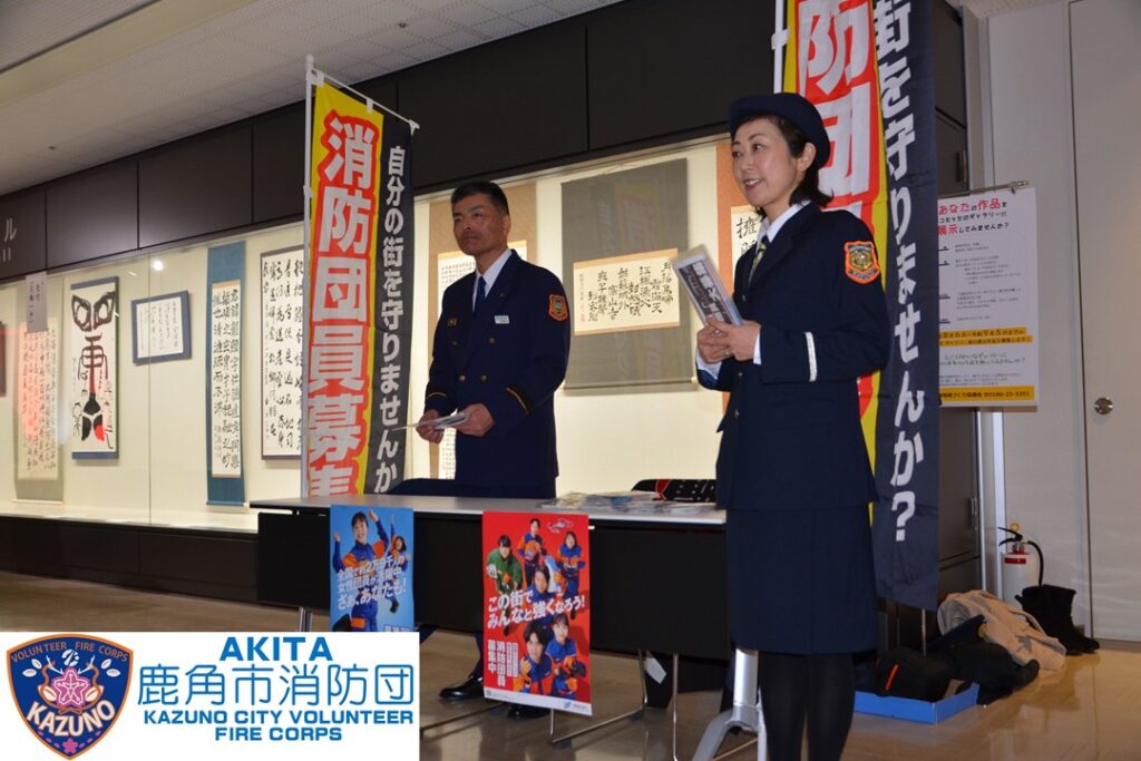 1月11日に文化の杜交流館コモッセで開催された二十歳のつどいにおいて、消防団の活動紹介やイメージアップを目的に、PR活動を行いました。